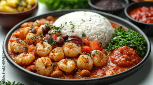 seafood, shrimp, rice, vegetable, plate, culinary, epicure, dinner, meal, cookery, herb, hearty, delicious, flavorful, cooking, spice, vibrant, fresh, colourful, garnish, cosy, dining, international, receipe, tropical, nourishment, creole, caribbean, dish, favor, eatery, local, market, homemade, ingredient, preparation, culture, festive, sharing, eatery, savour, taste, indulgence