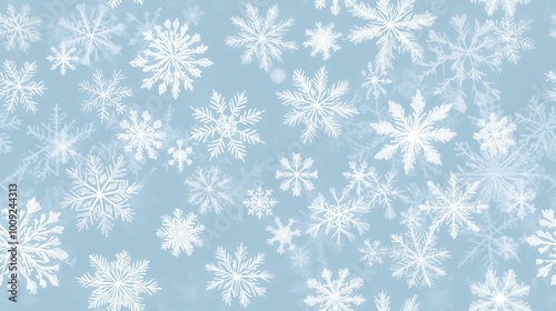 A seamless pattern features white snowflakes scattered across a light blue backdrop, creating a minimalist and elegant design perfect for winter-themed projects SEAMLESS PATTERN