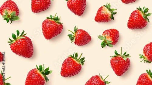 A seamless pattern of bright red strawberries on a light pastel background, perfect for a fresh and lively design.