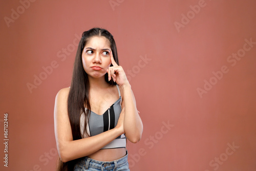 A Sensible Woman Is Thinking While Standing In Front Of A Pink Background