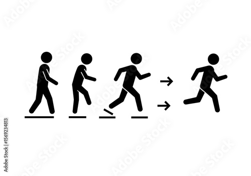 figure, stick, person, man, running, walk, motion, action, step, sequence, progression, forward, movement, silhouette, black, white, isolated, graphic, design, illustration, concept, symbol, icon, activity, exercise, sport, athlete, sprint, jog, fast, speed, training, fitness, health, lifestyle, active, energy, dynamic, run, start, finish, phase, stage, transition, growth, development, change, process, evolution