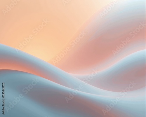 A serene abstract landscape with soft, flowing curves in pastel shades of light blue and peach, evoking a tranquil and dreamy atmosphere.