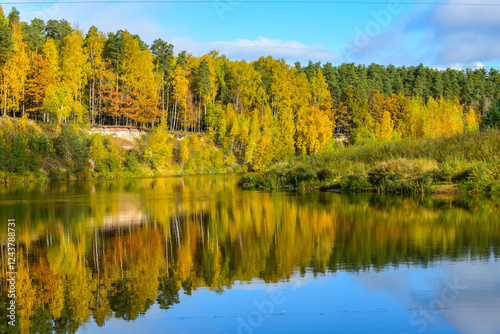 a, autumn, birch, colourful, foliage, forest, grove, yellow, jungle, landscape, larch, leaf, nature, orange, reflecting, river, scene, serene, small, state park, tall, tree, trunk, twig, vegetation, vibrant, timberland