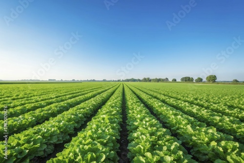 A serene, clean image of a field of healthy green crops under a bright blue sky, captured with crisp detail and natural clarity.
