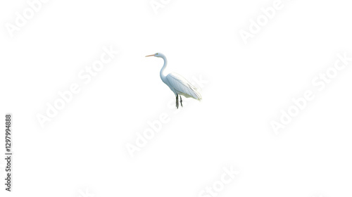 great egret, bird, white, serene, peaceful, elegant, graceful, minimalist, background, white background, natural light, soft light, tranquil, calm, nature, wildlife, avian, animal, plumage, feather, long neck, long legs, standing, isolated, simple, clean, beauty, stillness, quiet, bird of prey, heron, wading bird, water bird, birding, animal portrait, white bird
