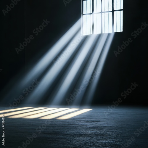 A serene, illuminated room with sunlight streaming through a window, casting shadows on the floor, evoking peace and reflection.