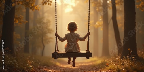 children, swing, forest, sunlight, nature, joy, childhood, serenity, autumn, happiness, outdoors, peaceful, innocence, play, scenery, adventure, warm tones, calmness, tree, silhouette, landscape, leisure, freedom, community, family, lifestyle, park, exploration, beauty, carefree, dreaming, wonder, growth, environment, whimsical, rural, calm, soft light, inspiration, creativity, relaxation, idylli, summer
