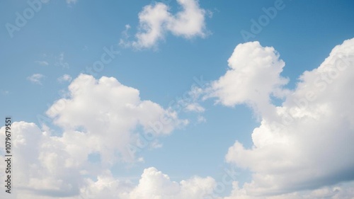A serene image of a picturesque sky filled with fluffy white clouds, creating a peaceful and dreamy atmosphere, tranquil, blue