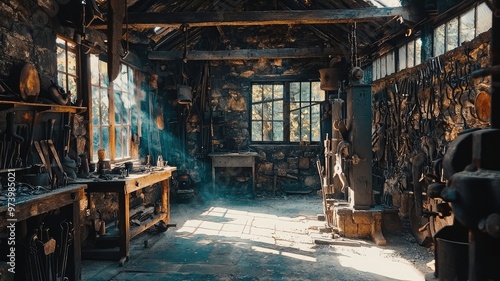 interior, workshop, sunlight, serene, rustic, soft, stream, window, create, warm, ambience, structure, cosy, ambience, woodwork, brick, peaceful, airy, zone, furniture, project, industry, flow, mood, artisan, surround, vintage, charme, surface, layout, metal, workplace, open, lifestyle, warmth, design, studio, atmosphere, colours, texture, workspace, craftsmanship, retreat, equipment, decor, sharpened, object, invite, craftsman
