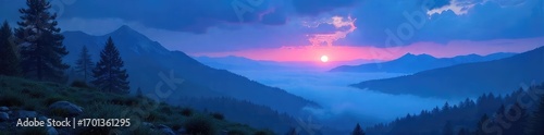 A serene landscape bathed in the soft blue hues of twilight, evoking a sense of peace and unity Perfect for themes of brotherhood, tranquility, and spiritual connection , blue, sky