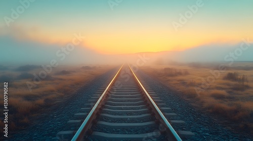 A Serene Minimalist Illustration of Railroad Tracks Leading to the Horizon, Capturing the Beauty of Emptiness and Infinite Adventure
