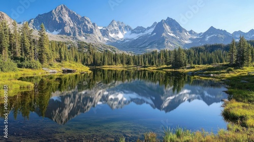 lake, mountain, peak, sky, blue, water, nature, landscape, scenic, tranquil, peaceful, serene, calm, wilderness, forest, tree, green, summer, travel, adventure, wild, majestic, beautiful, scenery, beauty, dawn, morning, sunlight, sunshine, horizon, panorama, picturesque, idylli, pristine, untouched, conservation, environment, outdoors, mountain chain, cloud, snow, rock, glacier, alpine, vista