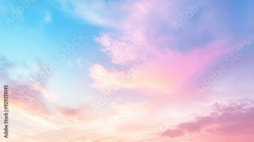 A serene sky at sunset showcasing hues of pink and blue, evoking tranquility.