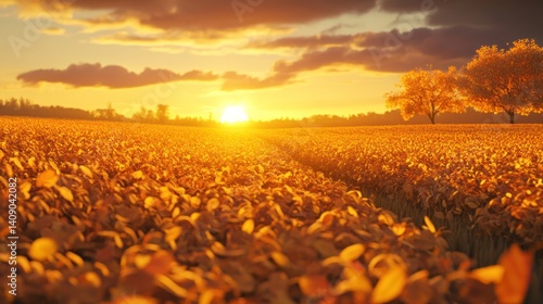 A serene sunset over a golden field, showcasing nature's beauty and tranquility.