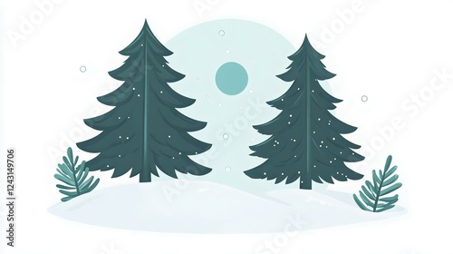 A serene winter landscape featuring two evergreen trees with snow, creating a peaceful snowy scene perfect for seasonal themes.