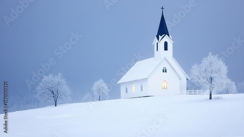 quiet, frost, church, nature, calm, light, white, cold, countryside, frosty, minimalist, beauty, tranquil, tree, landscape, snow, snow-covered, illuminated, still, simple, building, serene, pastoral, architecture, scene, snowy, blue, quietude, winter, peaceful, exterior