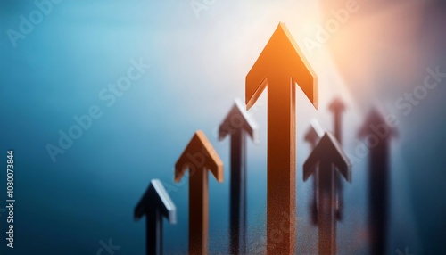 A series of upward-pointing arrows symbolize growth, progress, and positive direction against a blurred gradient background.