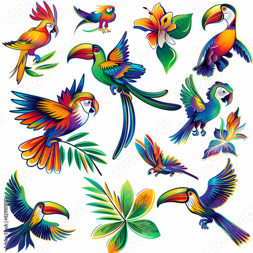 a Set Cute Superb Bird of Paradise on a White Canvas Sticker,vector image