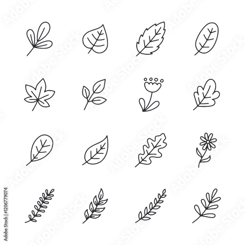 set, different, leaf, shape, black, white, nature, plant, size, icon, eco, vector, organic, line, tree, illustration, symbol, collection, design, green, ecology, silhouette, environment, thin, abstract, foliage, spring, autumn, element, outline, flora, graphic, summer, growth, concept, signs, flower, bio, fresh, garden, botany, season, decoration, simple, fall, pictogram, herb, logotype, linear