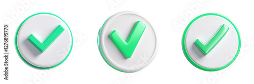 three-dimensional, icon, green, checkmark, circle, glossy, finish, vector, design, illustration, approval, success, modern, graphic, art, isolated, transparent, background, symbol, concept