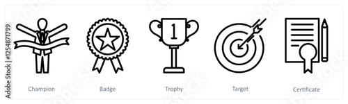 champion, badge, trophy, target, certificate, icon, vector, illustration, concept, design