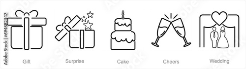 gift, surprise, cake, cheer, wedding, icon, vector, illustration, concept, design