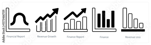 A set of 5 mix icons as finance report, revenue growth, finance
