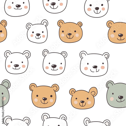 seamless, pattern, cute, bear, face, portrait, teddy, white, background, line art, pastel, colours, cartoon, style, children, tile, drawing, animal, design, print, wallpaper, illustration, paper, happy, childish, doodle, funny, children, character, art, children, wrapping, repeat, graphic, adorable, head, element, lovely, brown, smile, little, scandinavian, beautiful, fun, wildlife, fashion, cheerful, boy, abstract