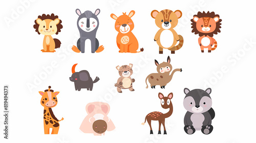 A set of cute cartoon animals. Vector flat images of animals for postcards, invitations, textiles, thermal printing