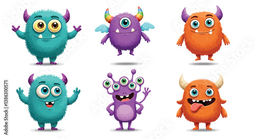cartoon, vector, illustration, monster, set, character, fun, collection, children, cute, funny, design