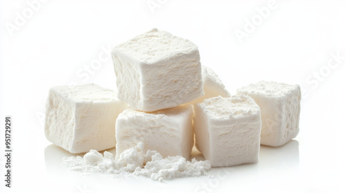 A set of delicious white zephyr marshmallows, isolated against a white background.