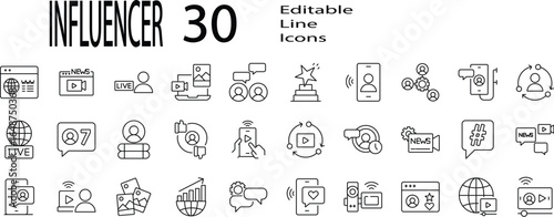 A set of line icons related to Influencer. Vector editable stroke.