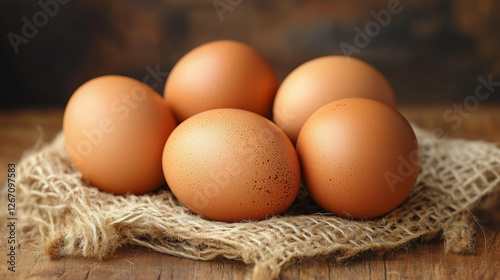 A set of raw organic brown eggs isolated on a clean surface, highlighting their earthy, natural appearance.