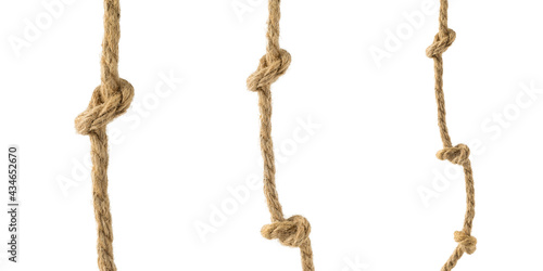 A set of rope ropes with knots isolated on a white background.