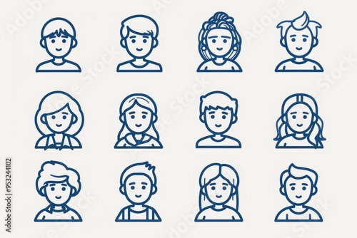 A set of simple icons featuring a group of people on a white background with a blue tone