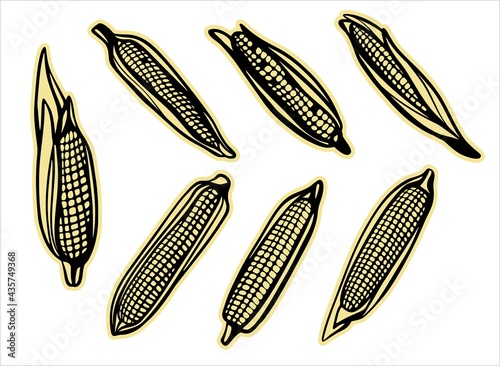 corn, autumn, icon, harvest, illustration, symbol, set, art, sticker, vector, vegetable, design, cartoon, leaf, graphic, isolated, nature, white, yellow, cob, maize, popcorn, healthy, sweet corn, grain, crop, kernel, nourishment, black, cereal, corncob, husk, seed, gold, vintage, ingredient, logotype, meal, ripe, vegetarian, clip, label, laurel, length, cut, plotter, black-and-white, retro, 7