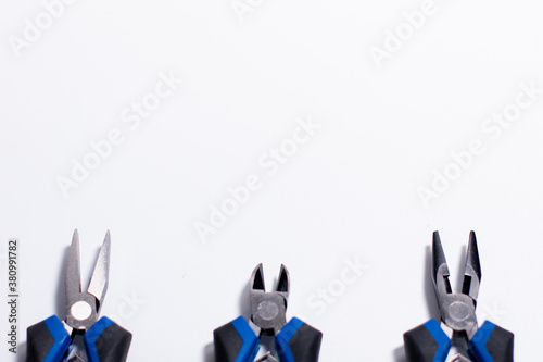set, three, different, type, side, cutter, up high, place, advertising, bend, chrome, clipping, fix, grip, handle, nip, nipper, pincer, plastic, repair, wire, steel, tool, stainless, rubber, pinch, isolated, kit, manual