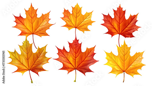 A set of vibrant red orange and yellow autumn maple leaves seasonal fall background texture design