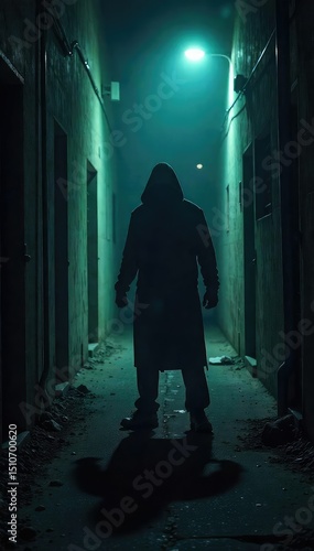 A shadowy figure, fists clenched, stands in a dimly lit alleyway, radiating menace and aggression The atmosphere is heavy with unspoken threat and impending violence , force, scary, rough