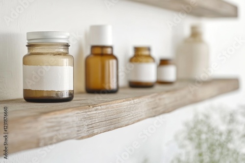 A shelf stacked with various jars and bottles containing different liquids, ideal for use in medical or scientific settings