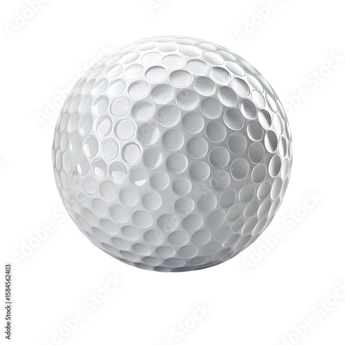 A shiny 3D golf ball in vivid white with precise dimples, realistic texture, and a clean, polished finish.