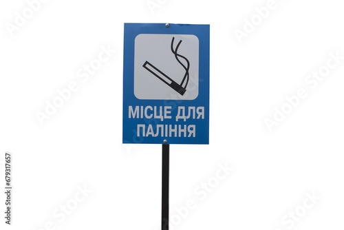 A sign with the inscription in Ukrainian "Smoking place" isolated