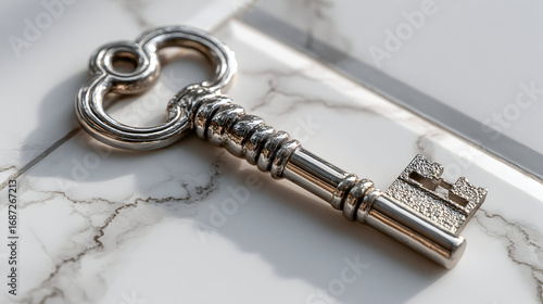 key, success, opportunity, solution, secret, skeleton key, marble, closeup, minimalism, copy space, elegant, luxury, vintage, antique, security, access, unlock, potential, growth, leadership, dream, aspiration, motivation, inspiration, abstract concept, metaphor, symbolism, isolated, white background, still life, texture, detail, topview