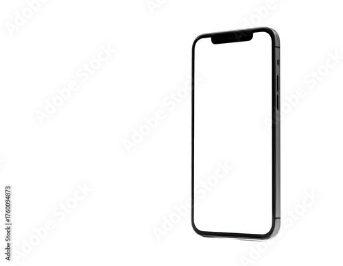 device, phone, mobile, smartphone, technology, screen, display, digital, contraption, blank, empty, interface, app, cellular, communication, touch screen, isolated, perspective, front, side, edge, bezel, buttons, volume, power, camera, slim, sleek, modern, design, product, render, glossy, shiny, metallic, silver, frame, contrast, shadow, dark, evacuated, minimalist, clean, portrait, orientation, space