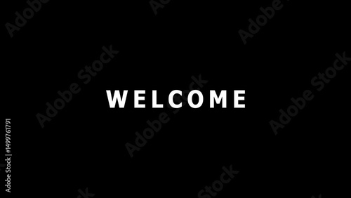 A simple and bold welcome message in clean white text against a solid black background designed for various uses.