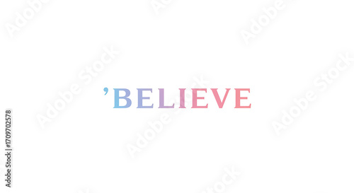 A simple and inspiring word 'BELIEVE' with a touch of color.