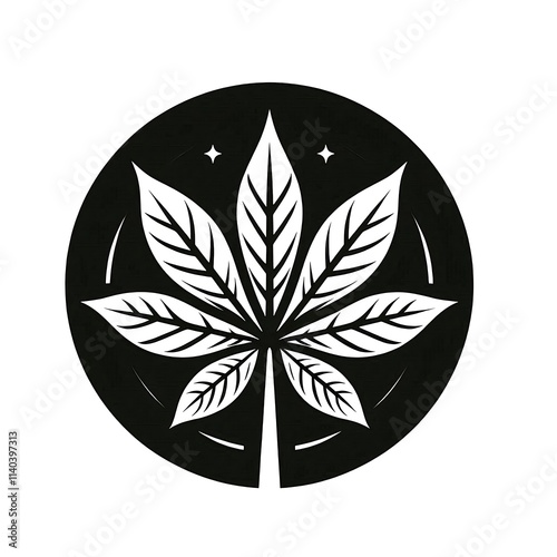 leaf, cassava, logotype, circle, minimalist, simple, black, white, elegant, clean, design, nature, graphic, icon, plant, agriculture, organic, symbol, round, modern, style, vector, artwork, branding, monochrome, silhouette, tropical, identity, visual, concept, creative, fresh, sustainable, beauty, harmony, growth, environment, simplicity, aesthetic, representation, decoration, emblem, foliage, botanical, artistic, unique