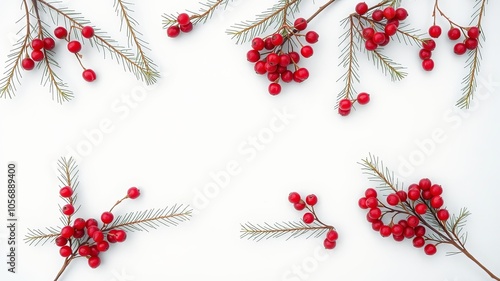 A Simple Arrangement of Bright Red Berries and Delicate Green Sprigs on a Pristine White Background