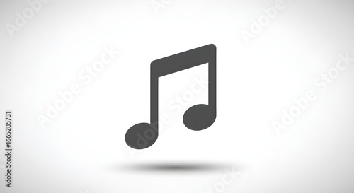 A simple black music note icon with a subtle shadow on a clean white background, symbolizing music, sound, audio, melody, rhythm, composition, entertainment, digital media, and creative arts.