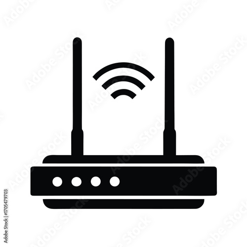 A simple black silhouette vector illustration of a modern WiFi router